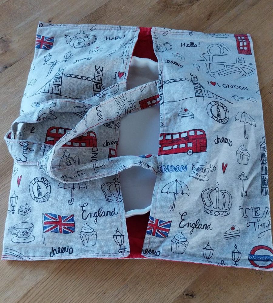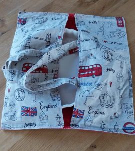 C’est mon conjoint qui a commencé à me commander un sac à pain. Il voulait en avoir un qui resterait dans sa voiture et qui lui permettrait d’éviter de mettre des miettes partout sur les sièges. C’est ainsi que j’ai pensé et cousu ma 1ère version. Le cahier des charges n’était pas trop compliqué : un sac non doublé et 2 anses.