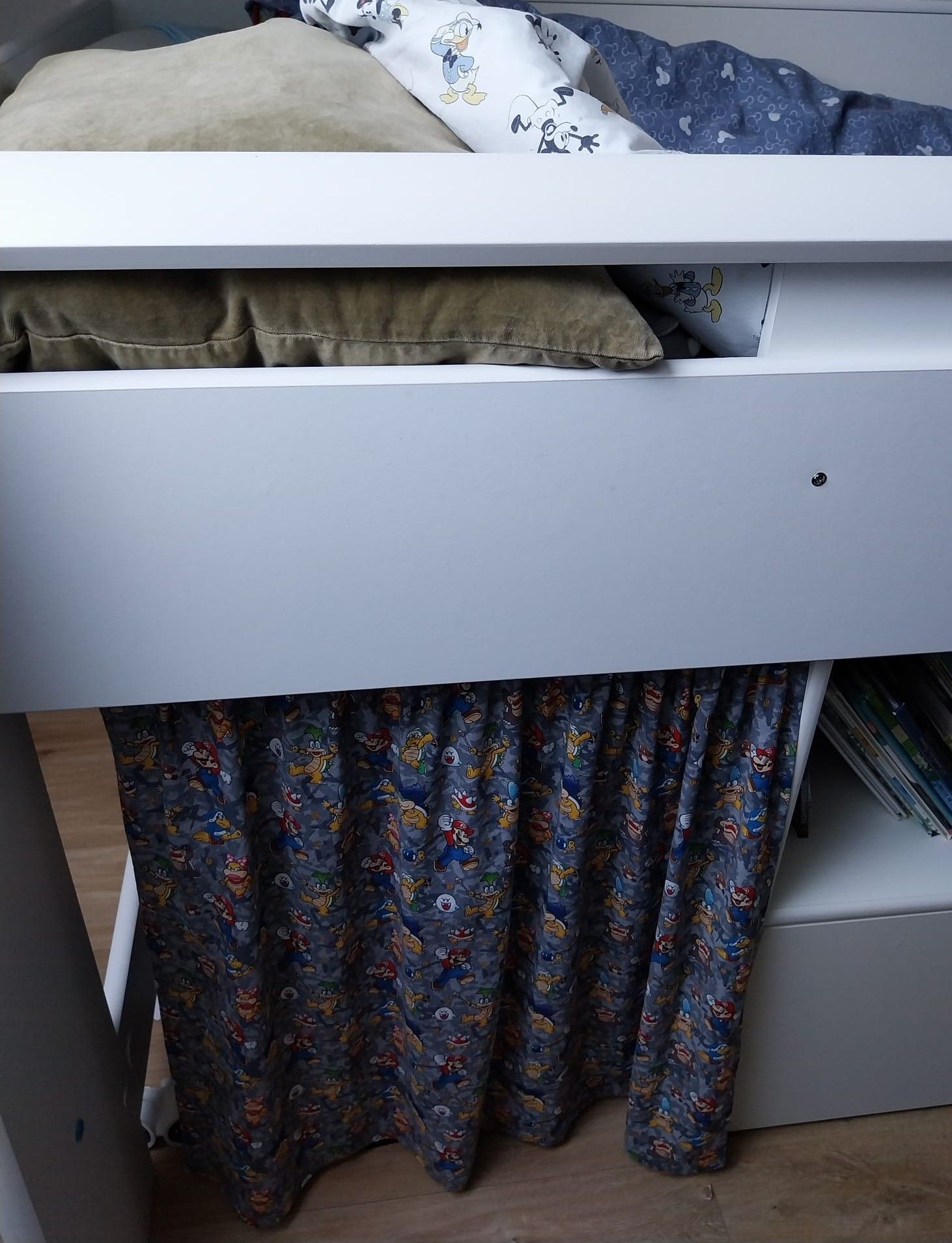 Parfois, coudre pour la maison peut être l’occasion d’organiser une activité avec les enfants : Un 1er avril, j’ai sorti mes chutes de tissus, mes feutres à tissu et mes Posca pour organiser une activité déco/couture. Les enfants ont dessiné sur des carrés de tissu et j’ai pressé au fer chaud en protégeant la semelle avec un chiffon en coton sec (ou une patte-sèche) pour fixer les couleurs. Un petit tour sous la machine à coudre, 4 pressions dans les coins (en faisant attention de bien mettre les parties mâles et femelles en sens inverse!) et hop c’était terminé.